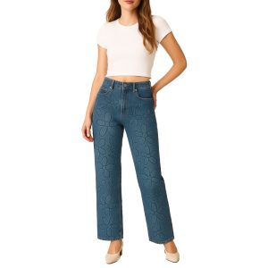 Quick Dry Women’s Embossed 100% Cotton Jeans | Casual Fashion Pants | Wholesale Custom Logo OEM ODM Available